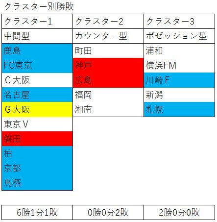 またクラスター3のポゼッション型には2勝0分0敗で負け知らずです。