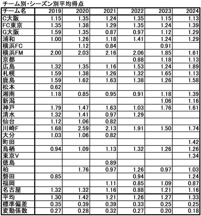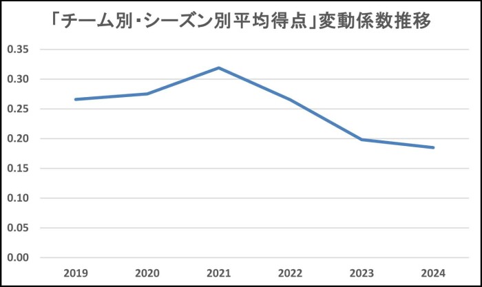 6年間の中で2024シーズンの変動係数が最も小さな値になっています。