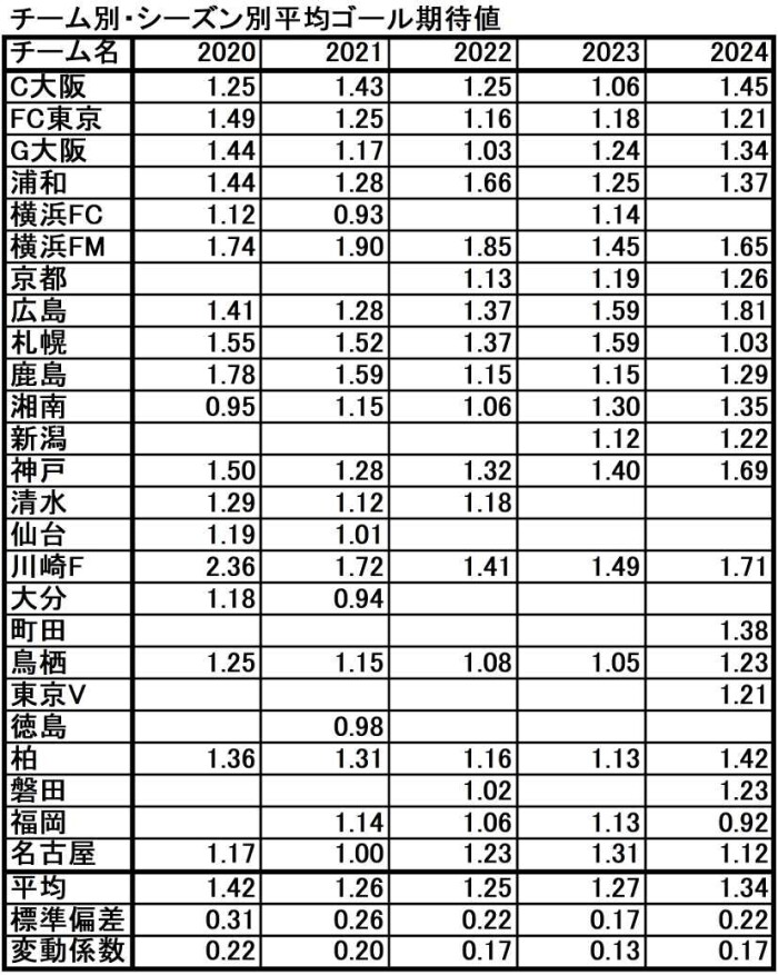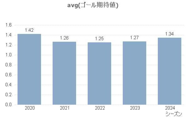 2020~2024シーズンの平均ゴール期待値を可視化しました。
