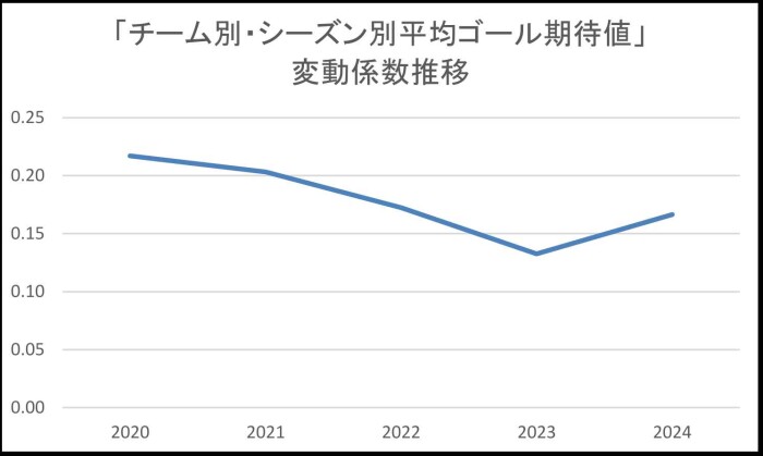 シーズン別平均得点推移の巻 | SPORTERIAにおいて、平均得点変動係数は小さくなっていると記載しました。