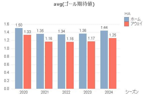 アウェイよりもホームの方がゴール期待値が大きいですね。