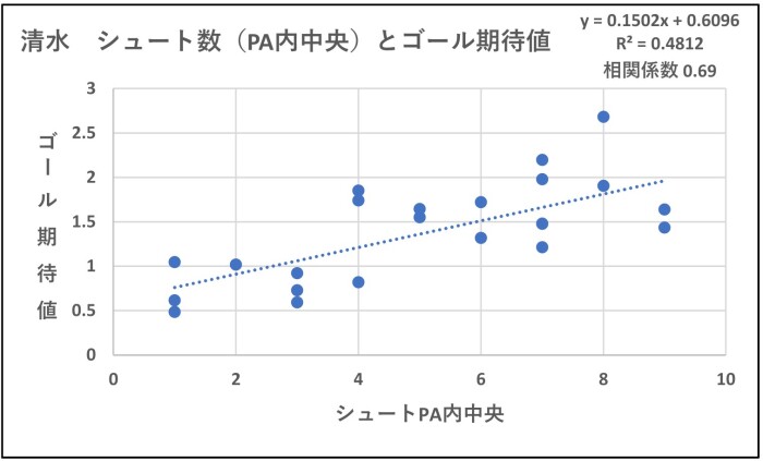 シュート数(PA内中央)と関連が強いです。