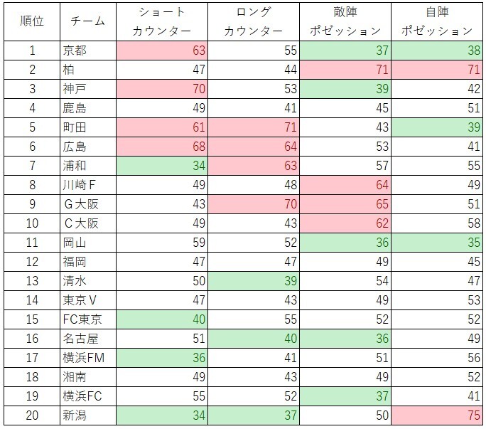 最近はカウンター型が猛威を振るっていますが、これを見る限り敵陣ポゼッション型の成績もいいようです。