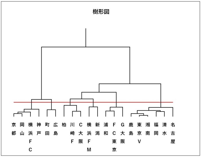 ということで、あっという間にクラスター分析を行い、下記の通り樹形図を作成しました。